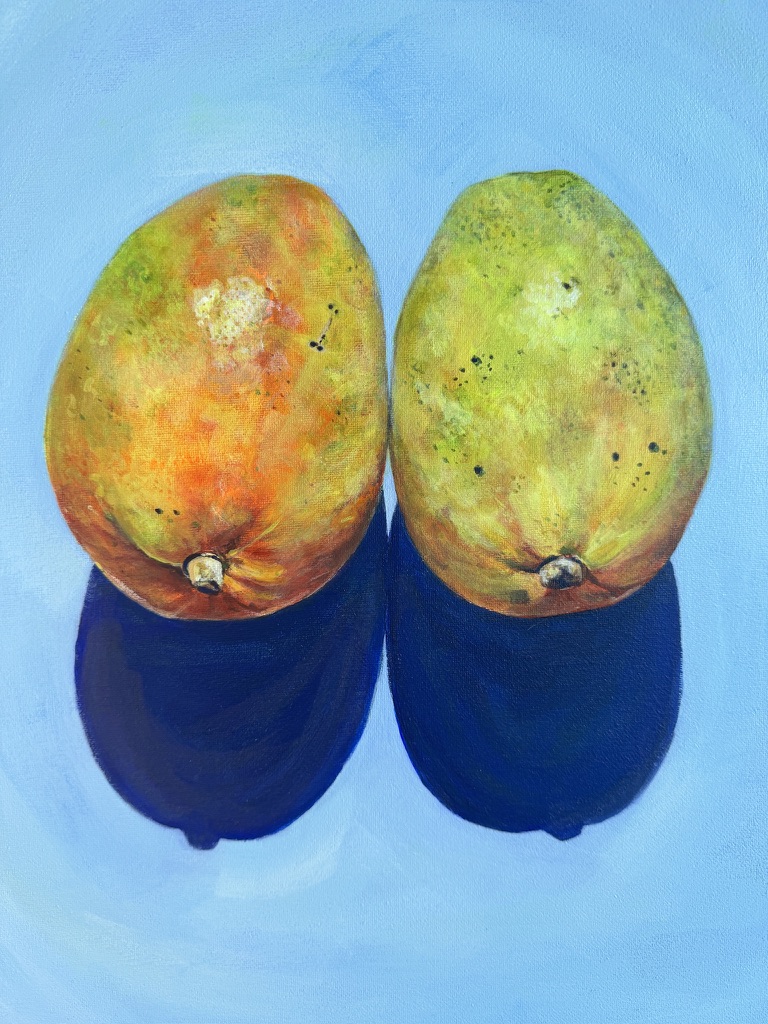 An “unladylike” hand gesture; a pair of ripe juicy mangos; a whimsical beaded bracelet branding the wearer as a slut. Across mediums and subjects, Amberg’s work celebrates and centers the irreducible complexity of the queer community.
